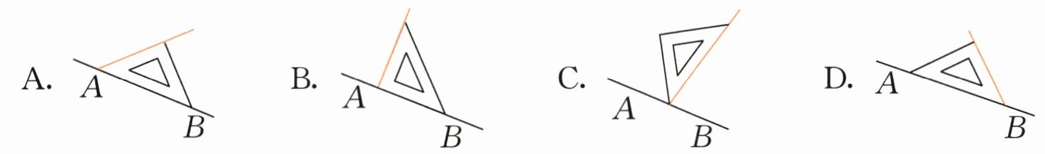 7. 用三角尺画出直线$AB$的垂线,下面方法中,正确的是(