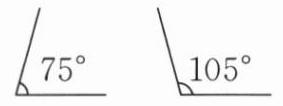 2. 用量角器分别画出$75^{\circ}$和$105^{\circ}$的角。(6分)