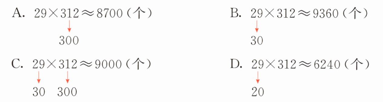 )最合理。$A.29× 312\approx 8700($个$)\downarrow300$
