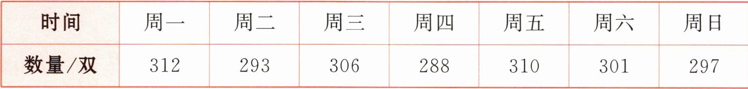 5 下表是曲妍调查的某饭店一周内每天用掉一次性木筷的数量情况。