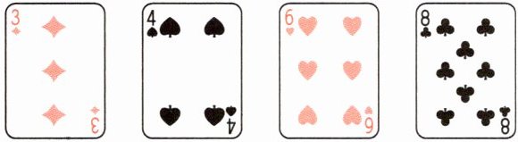 3 下面 4 张扑克牌上的点数,经过怎样的运算才能得到 24 呢?(每个点数只能用一次)