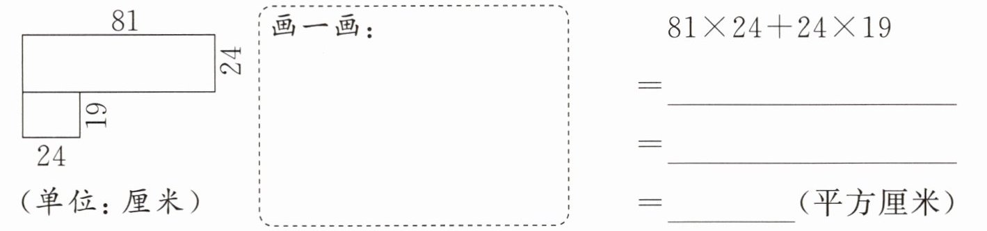 (2) 奇思根据妙想用的运算律计算下面图形的面积,请你把过程补充完整。