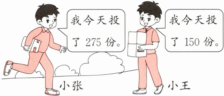 4 快递员每投递一份快递可得报酬 12 角,今天小张比小王多挣多少元?(用两种方法解答)