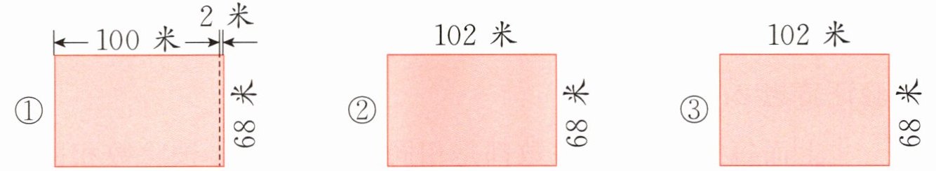 (1)102×68=(100+2)×68=100×68+2×68=6800+136=6936(平方米)