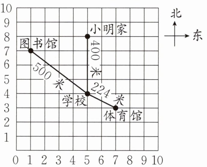 )方向。3. 小云从家出发,按如下路线走到小明家:$(4,3)→(1,3)→(1,7)→(9,7)→(9,8)→(5,8)$。请你用彩笔画出小云的行走路线。