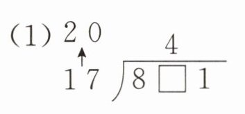 $\begin{array}{r}20 \\17 \enclose{longdiv}{8 □ 1} \\\downarrow \\4\end{array}$