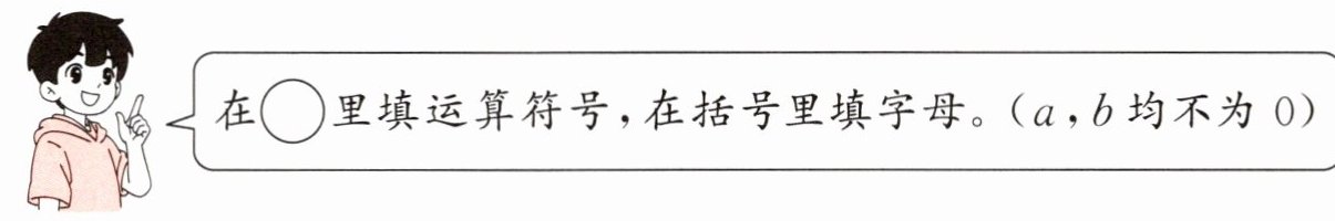 在$◯$里填运算符号,在括号里填字母。($a$,$b$均不为 0)