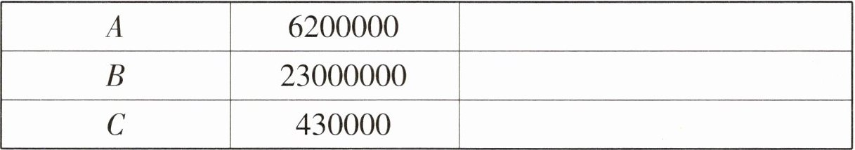 11. 把 A、B、C 3 地区的人口数改写成用“万”作单位的数。