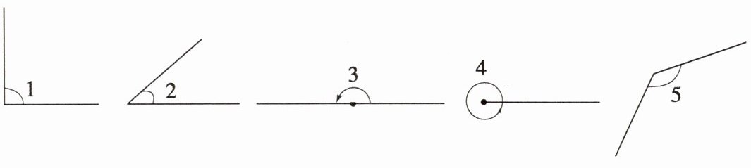 ∠( )是锐角,∠( )是直角,∠( )是平角,∠( )是钝角,∠( )是周角。
