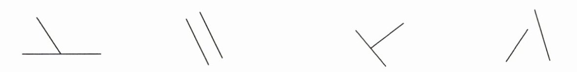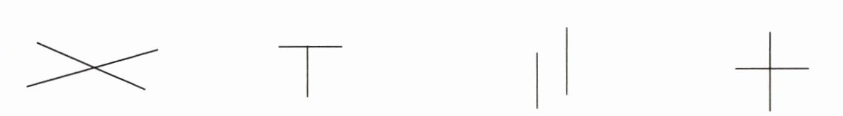 1. 下面每组中的两条直线,互相垂直的标“+”,互相平行的标“=”。