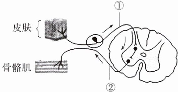 1. 如图为缩手反射的反射弧示意图。有关该反射叙述错误的是(