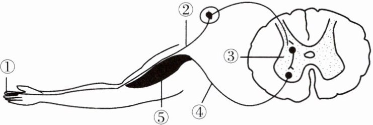 7. (重庆中考)小红在修剪月季时,不小心被刺扎到手迅速缩回,如图是缩手反射图,叙述正确的是(
