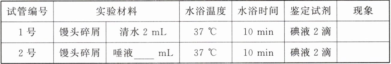)A.2号试管应加入2mL唾液