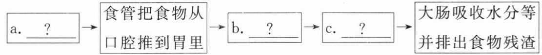 6. (山东潍坊中考)某同学设计的“消化和吸收”流程图如图所示(a、b、c代表器官),下列相关分析错误的是(