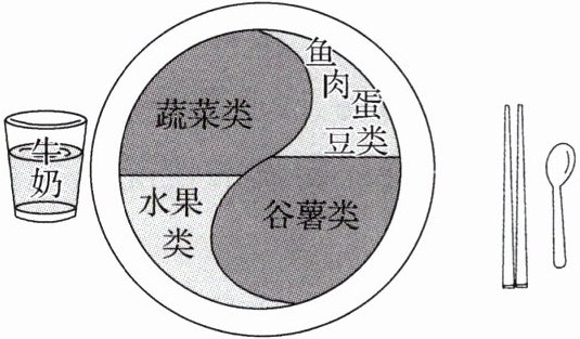 10. 《中国居民膳食指南(2022)》通过平衡膳食餐盘(如图)宣传平衡膳食的理念。下列相关叙述错误的是 ()