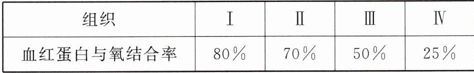 11. 下表是人体内四种组织处血红蛋白与氧气的结合情况。四种组织中呼吸作用最旺盛的是(