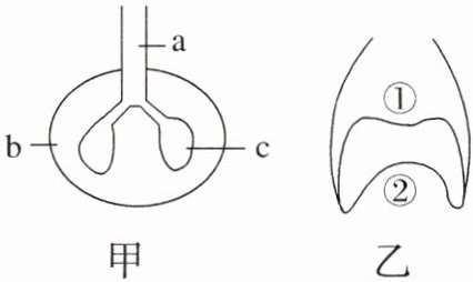1. 图甲表示气管a、胸腔b、肺c三者的组合示意图,图乙表示胸腔底部膈肌所处的①②两种状态。下列选项正确的是(