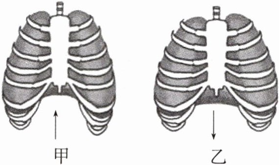 B.吸入药物时,肺部活动为图甲,此时膈肌收缩
