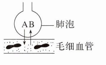 16. 如图是人体肺泡与血液之间进行气体交换的示意图,呼吸时,肺泡中的 A 气体进入血液,血液中的 B 气体进入肺泡,那么 B 气体是(