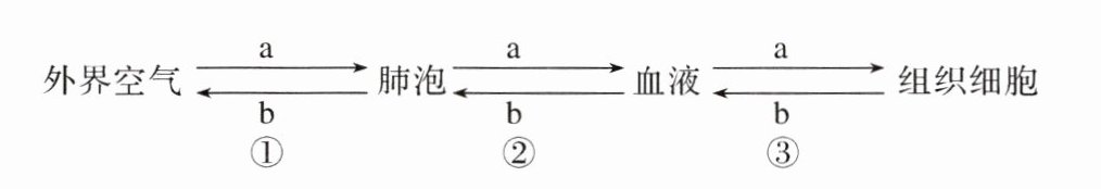 B.②过程中,[a]二氧化碳通过扩散作用进入血液