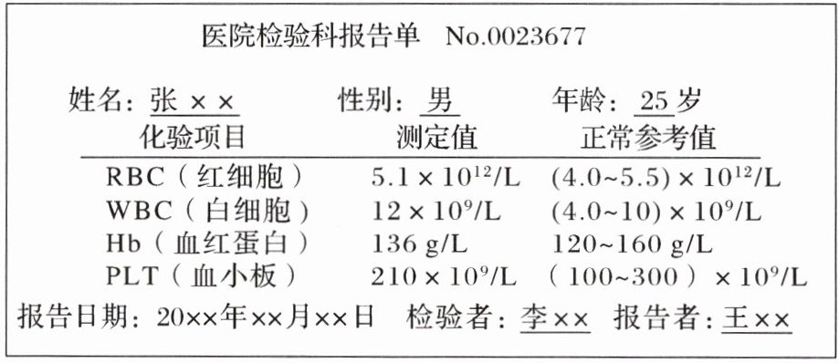 13. 如图是医院出具的一男子的血液分析报告单,根据已有的生物学知识分析该报告单,推断该男子可能患有的病症是(
