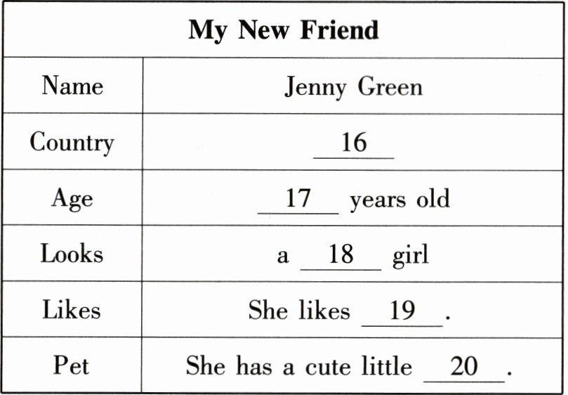 听下面一篇短文。根据你所听到的短文内容,填写表格中所缺单词,每空限填一词。短文读两遍。
