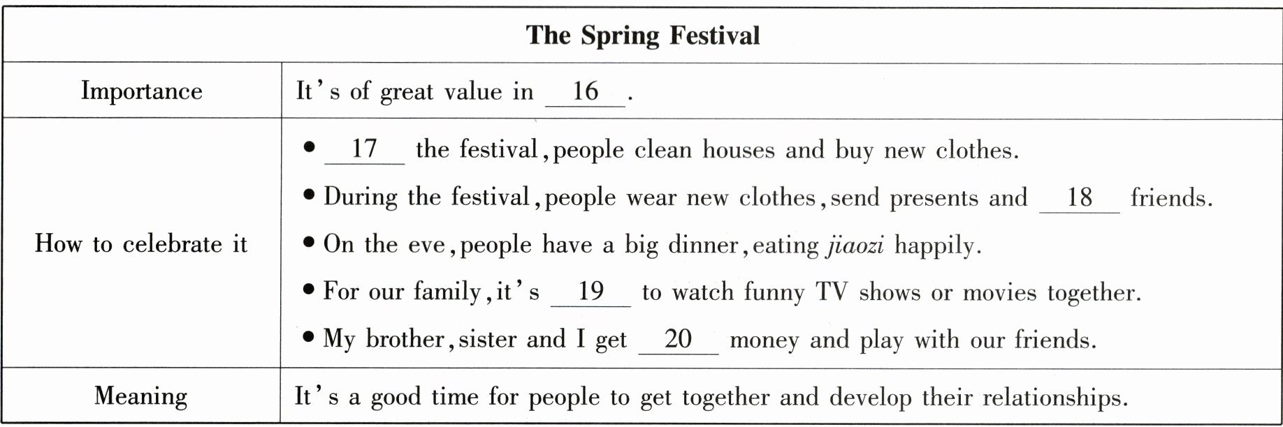)8. What is Alan’s favorite festival?A. The Lantern Festival.