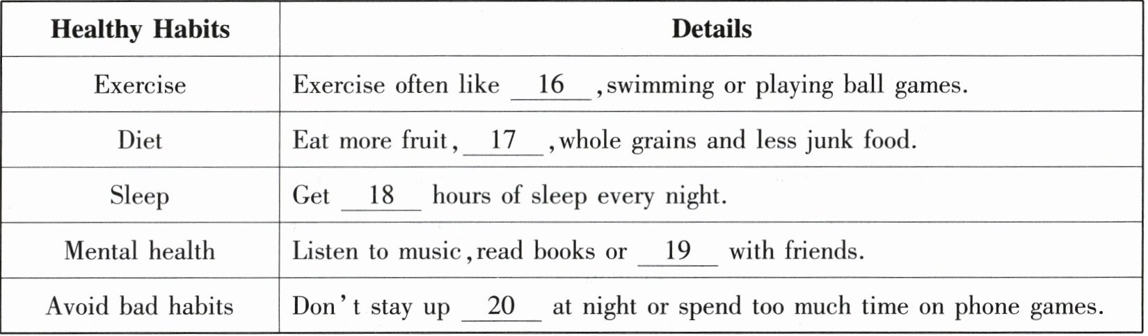 听下面一篇短文。根据你听到的短文内容,填写表格中所缺单词,每空限填一词。短文读两遍。