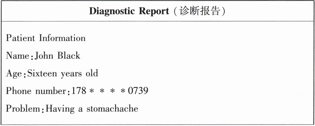 )21. What happened to John Black?A. He had a stomachache. B. He had a cough.