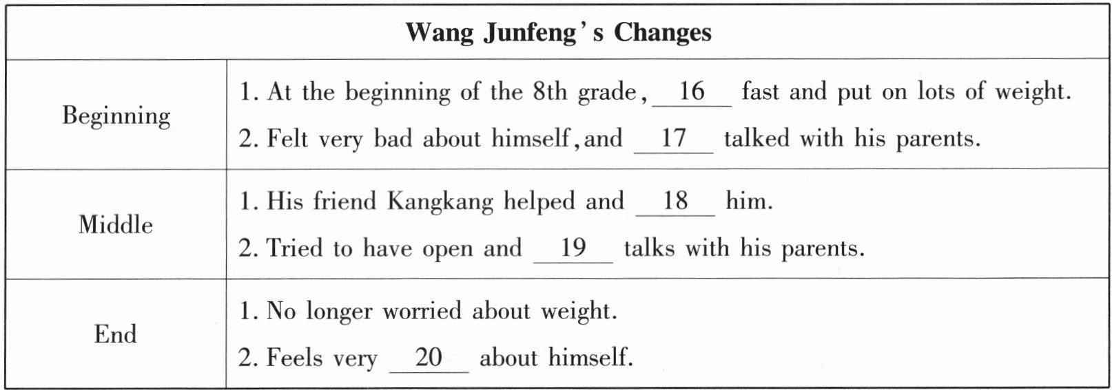 16.grew 17.hardly 18.encouraged 19.honest 20.happy