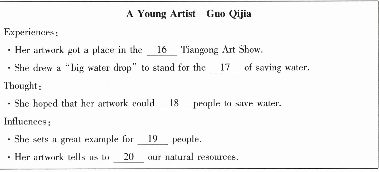 听下面一篇短文。根据你听到的短文内容,填写表格中所缺单词,每空限填一词。短文读两遍。