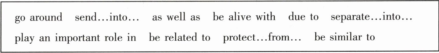 1. are alive with 2. as well as 3. Separate;into 4. is related to 5. is similar to 6. goes around 7. sent;into 8. protect;from 9. play an important role/part in 10. due to