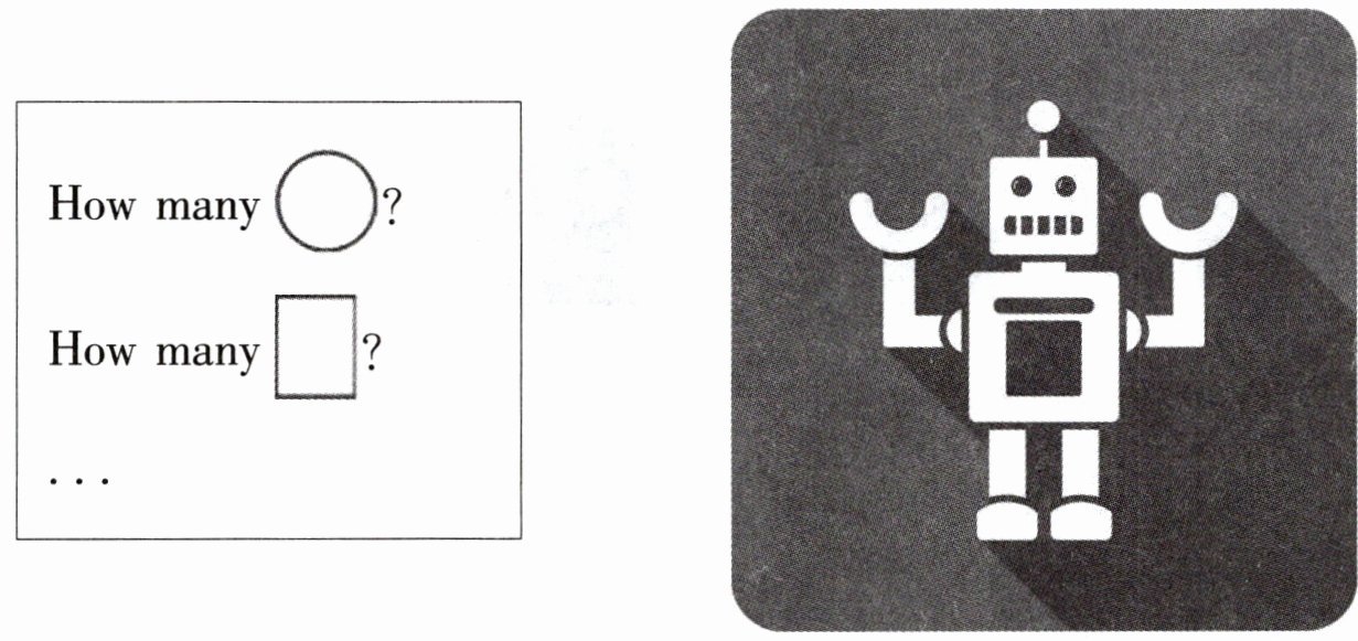 二、Look, count and say. 科学老师为大家准备了一个机器人模型。请你看一看、数一数,回答下列问题。