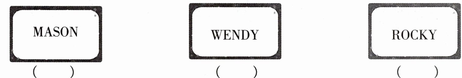 孩子们正在拼读自己的英文名字。请你仔细听一听,根据所听内容用数字1—3为下面的姓名牌排序。