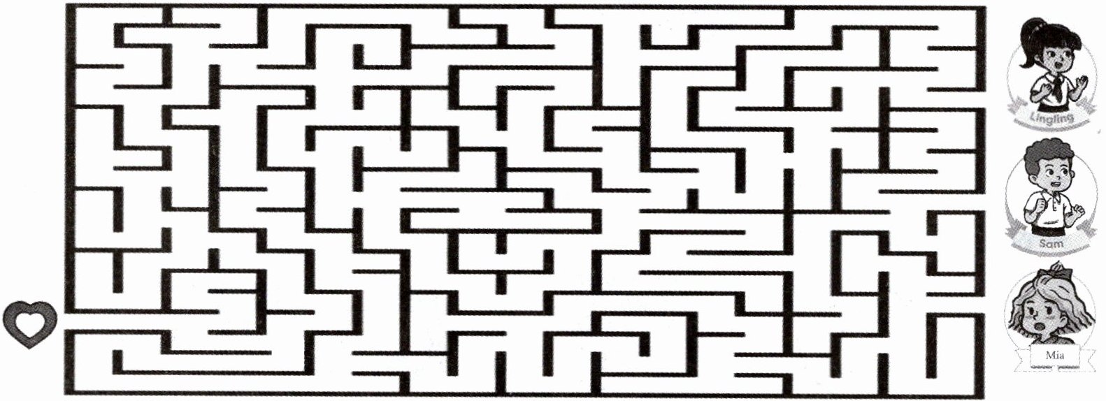 本学期我们认识了好多新朋友。请你在迷宫里走一走,画出路线,找到你的好朋友(不同的路线可以找到不同的朋友哦),并向我们介绍一下他/她吧!