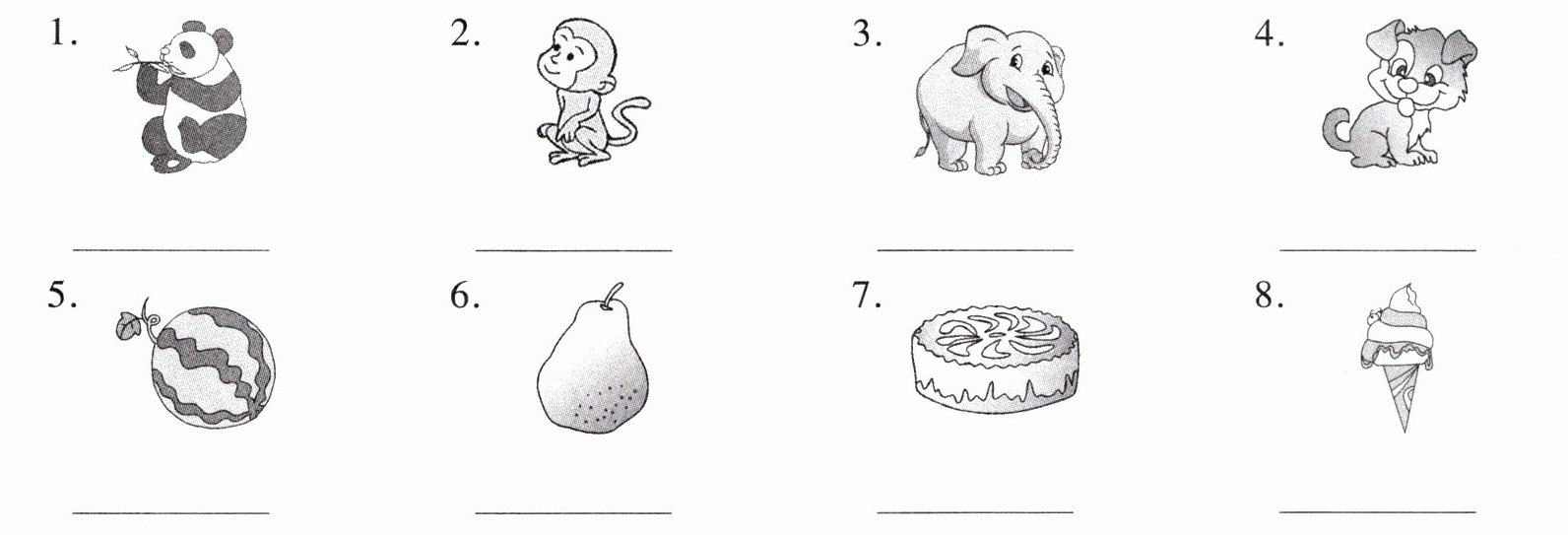 Ⅰ.1.panda 2.monkey 3.elephant 4.dog 5.watermelon 6.pear 7.cake 8.ice cream