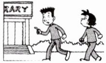 1.Where;going 2.Don’t talk in the library 3.card;in line