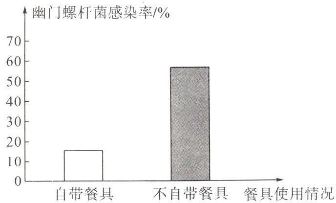 2. 幽门螺杆菌是世界上感染率较高的细菌之一,可在人与人之间传播,与肠胃疾病发病有关。为调查幽门螺杆菌的传播与人们日常饮食习惯之间的关系,某生物学兴趣小组对某社区志愿者展开调查,调查结果如图所示。下列说法错误的是(