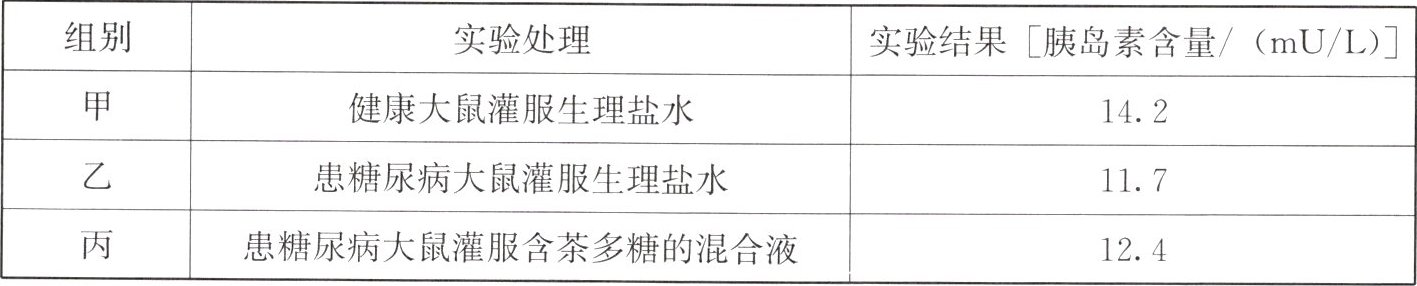 2. 为研究茶叶中的茶多糖对治疗糖尿病的效果,研究人员利用大鼠进行了相关实验,部分实验处理和结果如下表。下列叙述错误的是(