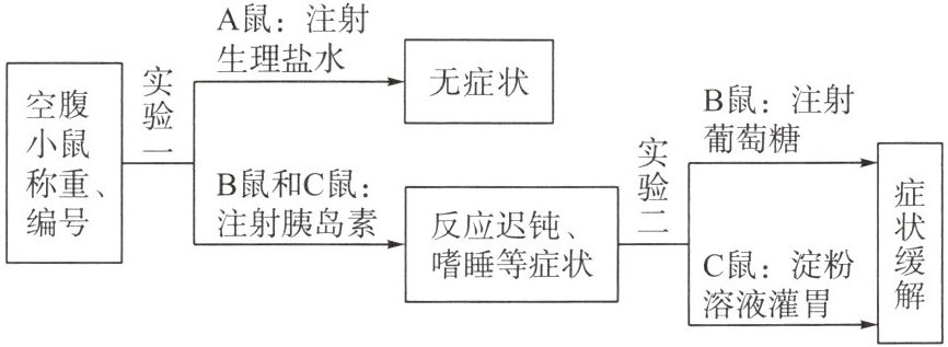 鼠。B鼠和C鼠出现相关症状的原因是血糖低于正常值