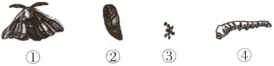 1. 《蚕桑萃编》记载了我国古代代蚕桑和手工缫丝织染技术。如图是某同学饲养家蚕过程中观察记录的家蚕发育的各个阶段示意图,其发育的正确排序是(