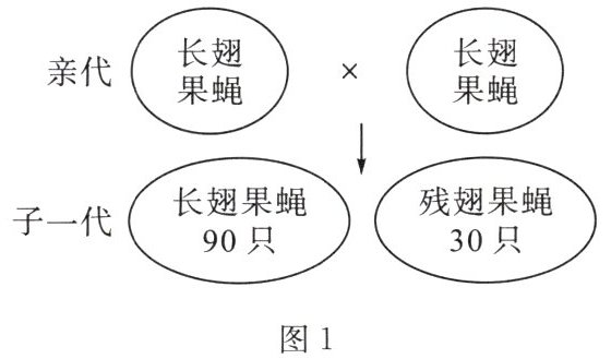 1. 果蝇是研究动物性状遗传的常用材料。已知果蝇的长翅和残翅是一对相对性状,由R和r基因控制。某校生物学兴趣小组将两只长翅果蝇进行交配,产生子一代的情况如图1所示。分析并回答下列问题。