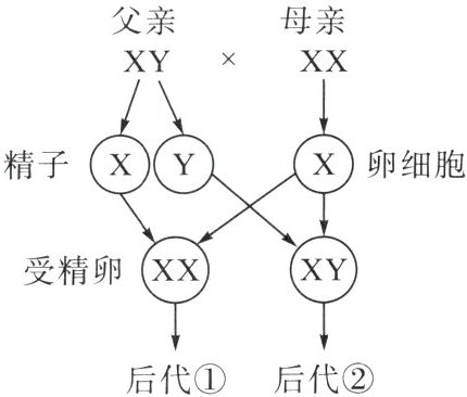 B.后代②的生殖细胞中性染色体组成为X或Y
