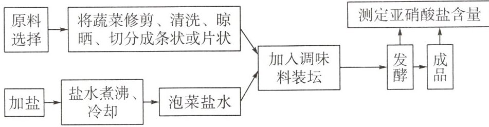 1. 泡菜是人们日常生活中比较喜欢的一种食品,如图是泡菜制作的流程图,据图回答下列问题。