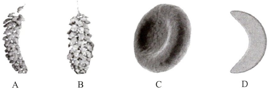 (2) 图C是正常人的红细胞形态,图D是镰刀型细胞贫血症患者的红细胞形态,