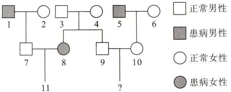 D.9号、10号个体生一个患病孩子的概率为1/2