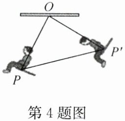 4. 如图,小聪坐在秋千上,秋千旋转了 $ 85^{\circ} $,小聪的位置也从 $ P $ 点运动到了 $ P' $ 点,则 $ \angle P'OP $ 的度数为(