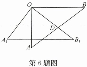 6. 如图,在 $ \triangle AOB $ 中,$ \angle AOB = 90^{\circ} $,$ AO = 3 cm $,$ BO = 4 cm $。将 $ \triangle AOB $ 绕顶点 $ O $ 按顺时针方向旋转到 $ \triangle A_1OB_1 $ 处,此时线段 $ OB_1 $ 与 $ AB $ 的交点 $ D $ 恰好为 $ AB $ 的中点,则线段 $ B_1D $ 的长是(