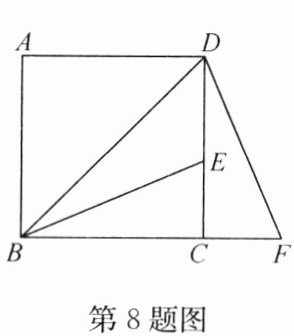 8. 如图,$ BD $ 为正方形 $ ABCD $ 的对角线,$ BE $ 平分 $ \angle DBC $,交 $ DC $ 于点 $ E $,将 $ \triangle BCE $ 绕点 $ C $ 顺时针旋转 $ 90^{\circ} $ 得到 $ \triangle DCF $,若 $ CE = 1 $,则 $ BF $ 的长为( )