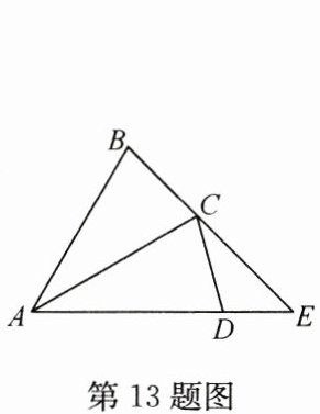 13. 如图,在 $ \triangle ABC $ 中,$ AB = AC = 4 $,将 $ \triangle ABC $ 绕点 $ A $ 顺时针旋转 $ 30^{\circ} $,得到 $ \triangle ACD $,延长 $ AD $ 交 $ BC $ 的延长线于点 $ E $,则 $ DE $ 的长为